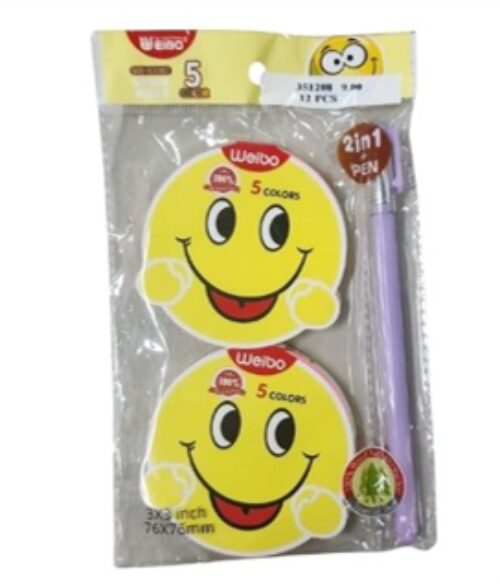 2PC SMILEY STICKY NOTES W PEN ITEM CODE: 351208 BARCODE: 0000351208 CASE QUANTITY: 288 SIZE: 6*4″