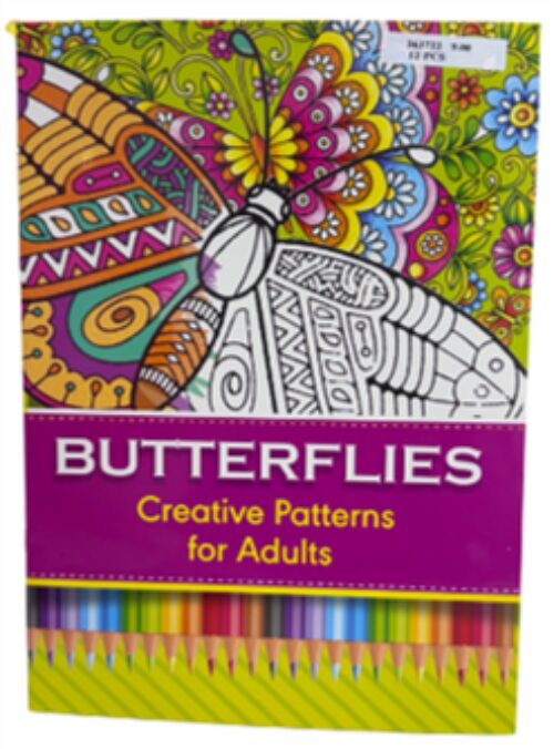 BUTTERFLIES 32 PAGE ADULT COLORING BOOK ITEM CODE: 363722 BARCODE: 0000363722 CASE QUANTITY: 288PCS SIZE: 11*8″