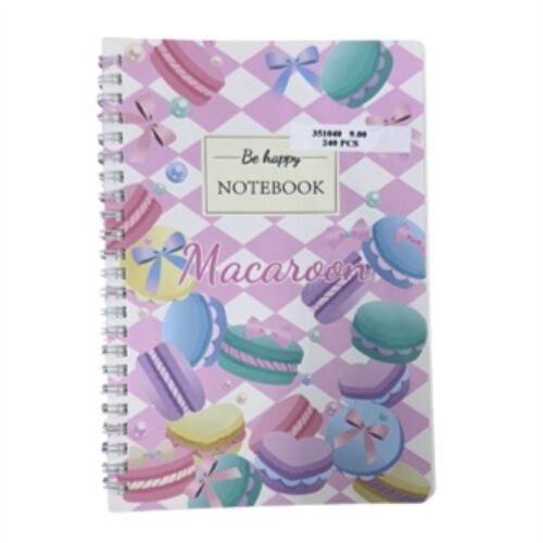 MACAROON NOTEBOOK 60 SHEETS ITEM CODE: 351040 BARCODE: 0000351040 CASE QUANTITY: 240PCS SIZE: 8*5.5″