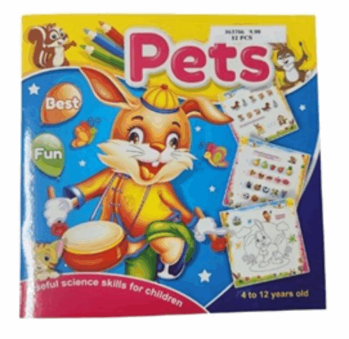 PETS ACTIVITY & LEARNING BOOK 16 PAGES ITEM CODE: 363706 BARCODE: 0000363706 CASE QUANTITY: 12 SIZE: 8*8″