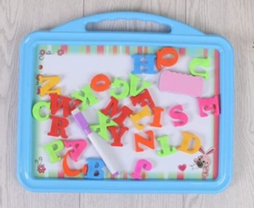 MAGNETIC WRITING BOARD W LETTERS COLORS: BLUE, YELLOW & PINK ITEM CODE: 197326 BARCODE: 0000197326 CASE QUANTITY: 96PCS SIZE: 12*9″